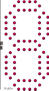 Damit die Anzeige weithin sichtbar ist, soll sie aus ultrahellen LEDs diskret aufgebaut werden. Abbildung 1 zeigt einen Aufbau bestehend aus 70 LEDs, wobei jedes Segment aus 10 LEDs besteht. In dieser Konstellation ist eine Ziffer etwa 160 mm hoch. Bei einer Versorgungsspannung von 12V können 5 rote LEDs in Reihe geschaltet werden, so dass jedes Segment aus jeweils zwei Reihenschaltungen besteht.
