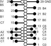 2 x Einerstelle mit 2 Strängen je Segment bei 7 Segmenten 28 Stränge