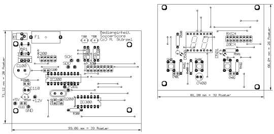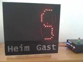 Um die Anzahl LEDs und damit die Kosten zu begrenzen ist vorgesehen, die Anzeige des Punktestandes je Partei einstellig darzustellen. Im Amateurfußball können jedoch auch schon mal zweistellige Ergebnisse vorkommen. Ggf. kann hierzu die Anzeige um zwei Segmente zur Darstellung der „1“ im Zehnerbreich erweitert werden. Nach aktuellem Layout (10.07.09) sind hierzu zwei Segmente à 10 LEDs = 20 LEDs erforderlich, was die Gesamtmenge der LEDs auf 180 erhöhen würde (zzgl. ggf. bis zu 20 weiterer LEDs für den Doppelpunkt).