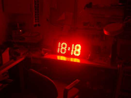 Bei der Auswahl der LEDs ist zu beachten, dass viele der ultrahellen LEDs zwar eine nominell hohe Helligkeit (bis zu 30.000 mcd) aufweisen, dies aber auf Kosten des Abstrahlwinkels, d. h. die Helligkeit wird im Wesentlichen durch die Fokussierung des Glaskörpers realisiert. Diese Eigenschaft ist für eine Anzeige, die unter einer weiten Blickwinkel sichtbar sein soll ungeeignet. Die hier ausgewählten LEDs mit 7.000 mcd bieten den bestmöglichen Kompromiss zwischen Helligkeit (mehr als ausreichend), Abstrahlwinkel (trotz relativ kleinem Abstrahlwinkel von 30° zeigt die Praxis, dass sie auch unter flachem Winkel deutlich rot leuchten) und nicht zuletzt der Preis.